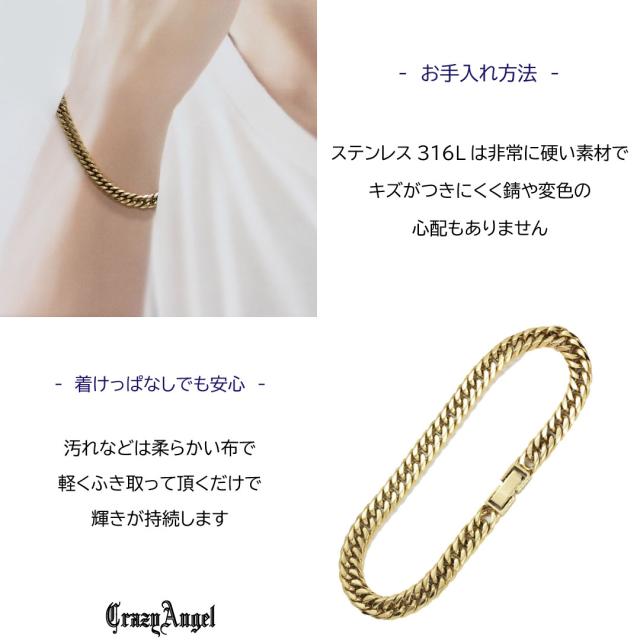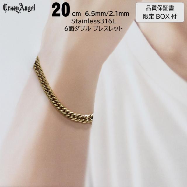 喜平ブレスレット メンズ チェーン ステンレス 6面 ダブル w 20cm キヘイブレスレット キヘイチェーン ゴールド 金 クレイジー エンジェル