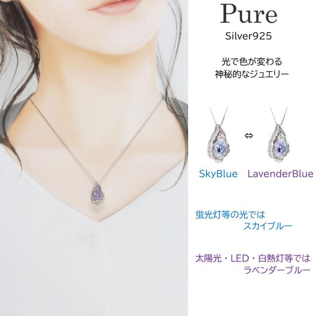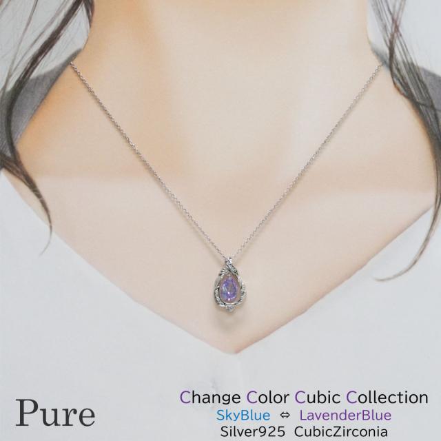 ネックレス ペンダント レディース 20代 30代 40代 50代 キュービック ジルコニア シルバー ゴールド ブルー パープル 色が変わる 金属アレルギー 対応 変色防止