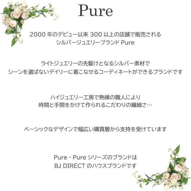 いつまでもピュアな輝きを保てる様、宝飾用高品位コーティングしていますので、シルバー特有の変色を防いでいます。
