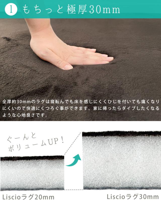 liscio もっと 極厚 3cm ラグ マット 190×190cm 正方形 カーペット 絨毯 ラグマット 足音 厚め はっ水 撥水 防汚