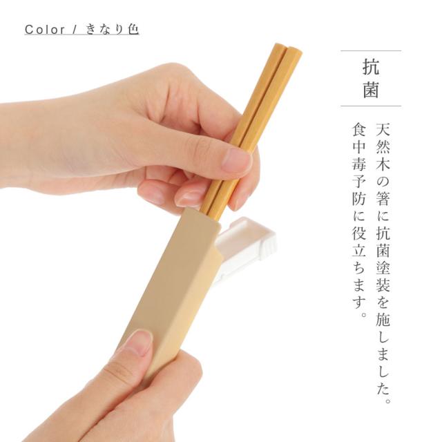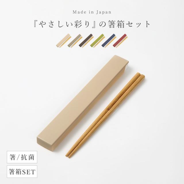 抗菌加工が施された天然木の箸と、やさしい日本の色の箸箱セットです。