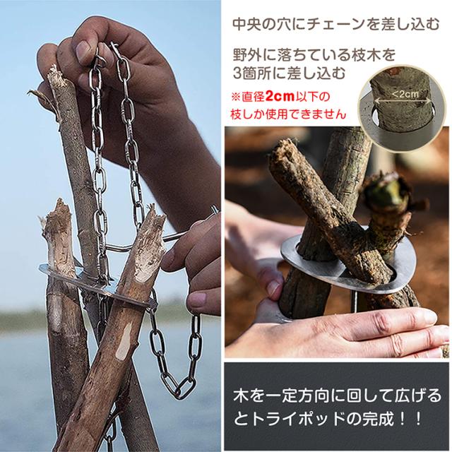 Camping トライポッド 自作 リング 三脚 DIY 焚き火 コンパクト ポーチ チェーン ステンレス キャンプ アウトドア 軽量 調理 料理 od468