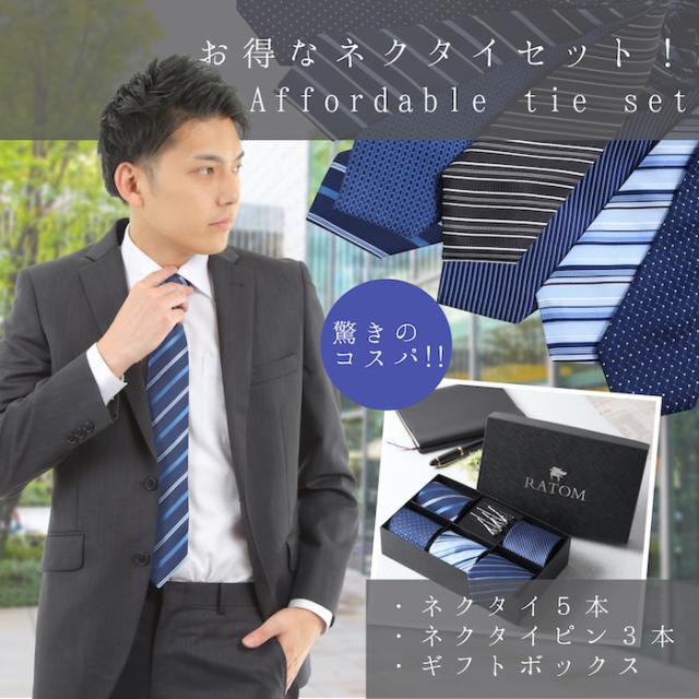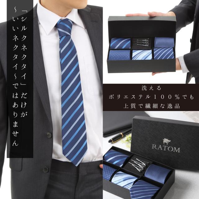 ネクタイ5本、ネクタイピン3本、ギフトボックス