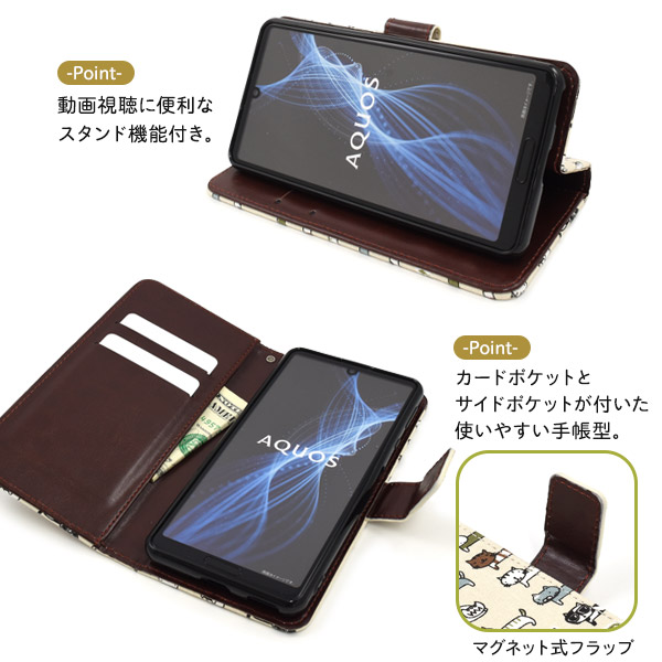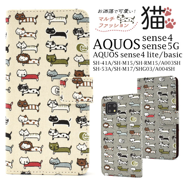 スマートフォンケース AQUOS sense4 SH-41A SH-M15 sense4 lite SH-RM15 sense4 basic A003SH sense5G 手帳型 可愛い 猫柄 スマホケース にゃんこ 猫 猫模様 携帯ケース 装着簡単 オシャレ カジュアル お洒落 ねこ 横開き 大人可愛い 大人女子 auスマホ SHG03
