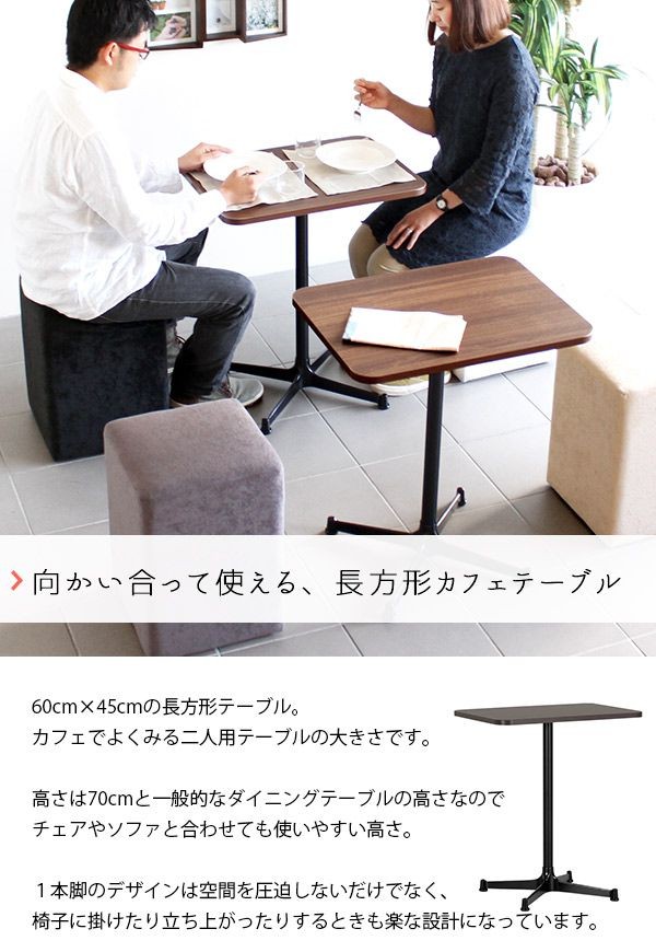 カフェテーブル/長方形/2人用/北欧/おしゃれ/テーブル/机/食卓/インテリア/2人/60/60cm/カフェ/