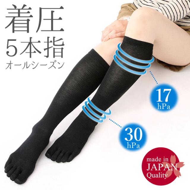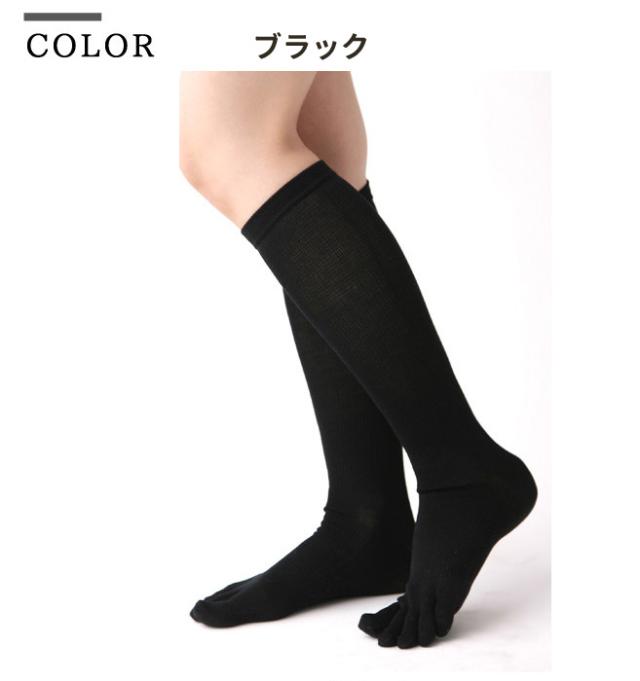 日本製 5本指 着圧ハイソックス 着圧ソックス レディース 五本指 黒 無地 ソックス 綿97% コットン ブラック オールシーズン 薄手タイプ (mm-4966)メール便【送料200】 ハイゲージ 冷え対策 吸湿発散 立ち仕事 段階着圧で心地よい着圧感