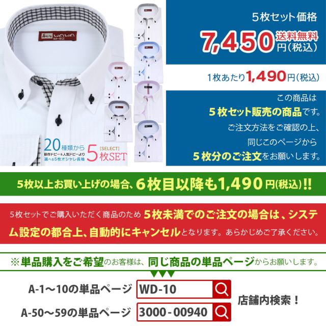 アクティブ系ホワイトドビーA-50シリーズ含む20種類から、お好きなワイシャツを自由に選べる5枚セット