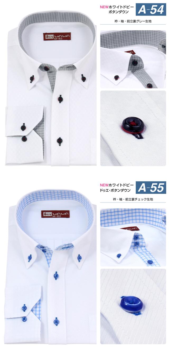 こちらの商品はホワイトドビーシャツを基準に襟裏の柄や襟型に様々なデザインを施しておりますので