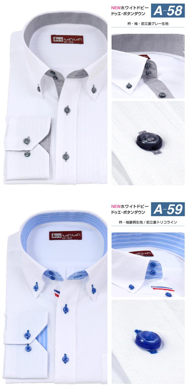 ビジネス・ワイシャツ・Yシャツ・カッターシャツ・長袖・長袖ワイシャツ・カフェ・ユニフォーム・作業服・事務服・白シャツ・ブランドシャツ・メンズシャツ・ホワイトドビー・ドビー織り・ドビーシャツ・ホリゾンタルカラー・ストライプ・ドゥエボットーニ・結婚式・冠婚葬祭・標準体型・スリム体型・二重襟・襟裏柄・袖裏柄・汗ジミ防止・ボタンダウン・形態安定・Sサイズ・Mサイズ・Lサイズ・LLサイズ・3Lサイズ・ビックサイズ・大きいサイズ・おしゃれ・カジュアル・クールビズ・インスタ・インスタ映え