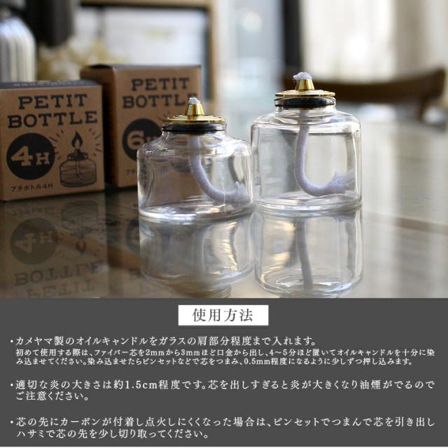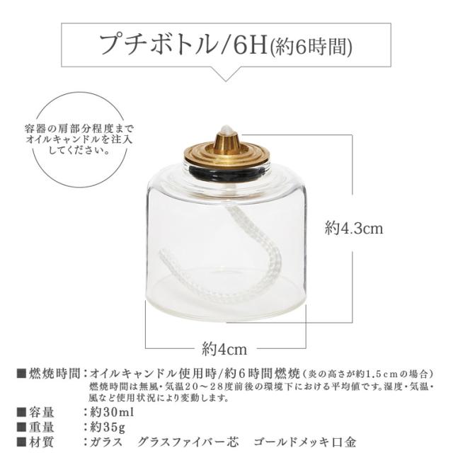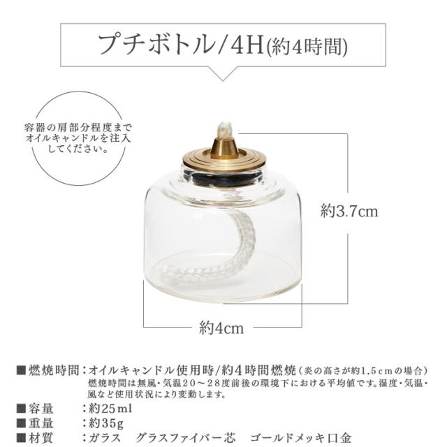 【単品】プチボトル 4H or 6H オイルキャンドル専用 パラフィンオイル用 4時間 6時間 ガラスボトル ティーライトキャンドルの代わりに 繰り返し 炎 火 ランタン用 カメヤマキャンドル 液体キャンドル おしゃれ かわいい agesugi_ssp