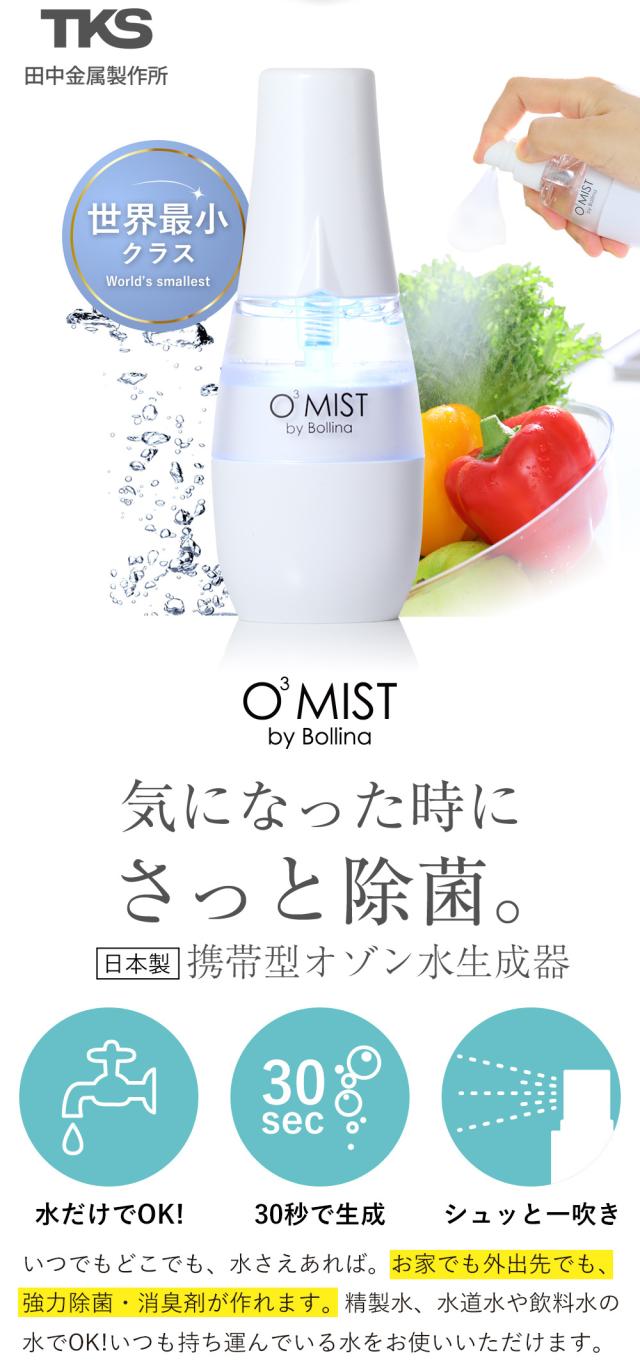 水だけで除菌 オースリーミスト オゾン水 生成器 30秒で 除菌水 簡単スピード生成 田中金属 水だから安心・安全 除菌液 どこへでも持ち運べるので気になった時にシュッと一吹き 細菌対策 ウイルス対策 グッドデザイン賞受賞 送料無料 母の日 ギフト 父の日 o3-mist