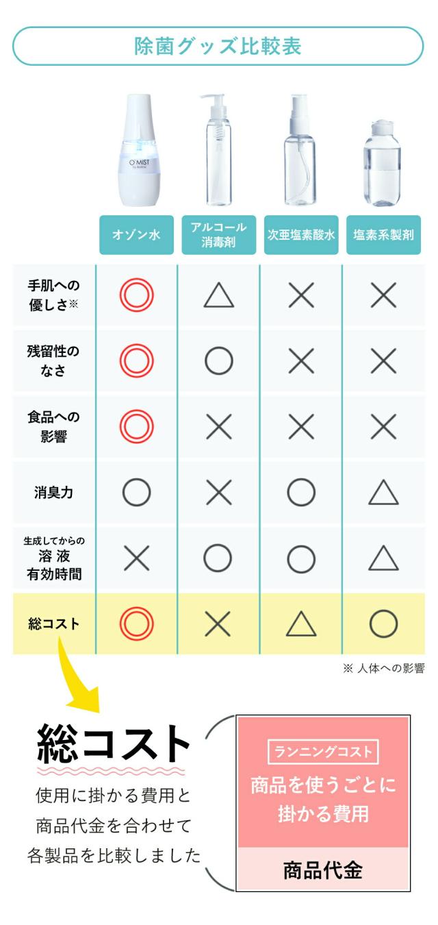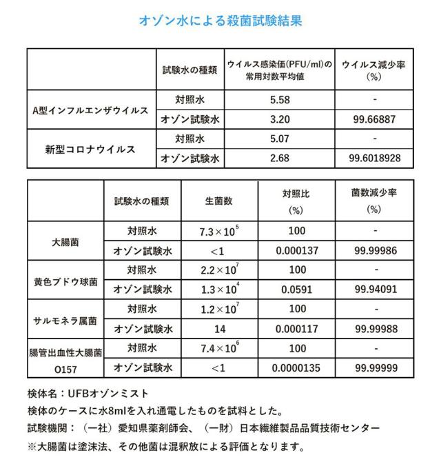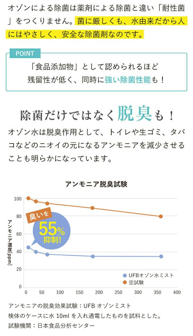 オゾン水濃度 0.2 〜 0.5mg/L(精製水)