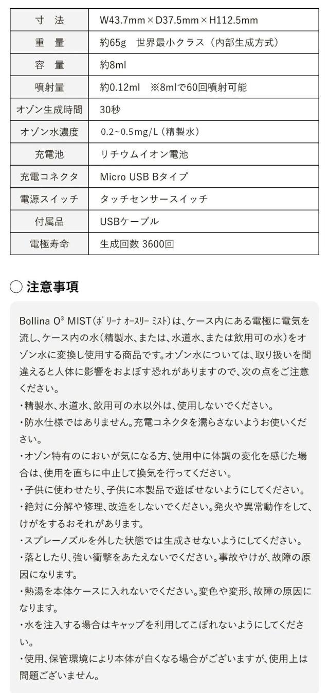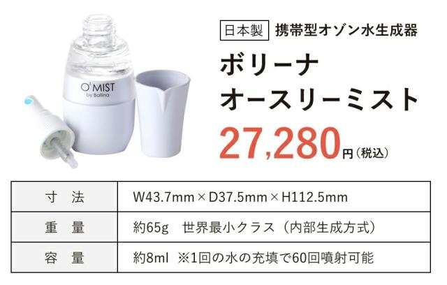 品名 携帯型オゾン水生成器 ボリーナオースリーミスト