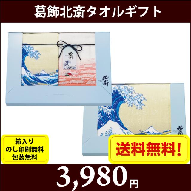 【葛飾北斎】タオルギフトセット なみぐも K-3545 全国送料無料 箱入り、のし印刷無料、包装無料 お中元 お歳暮 ご挨拶 賞品