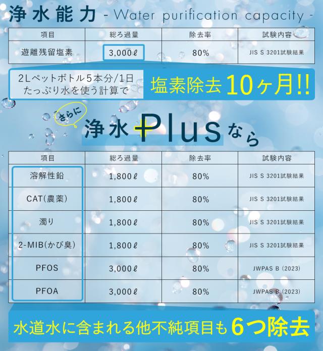 総ろ過水量 3000? 除去率80% JIS S 3201試験結果