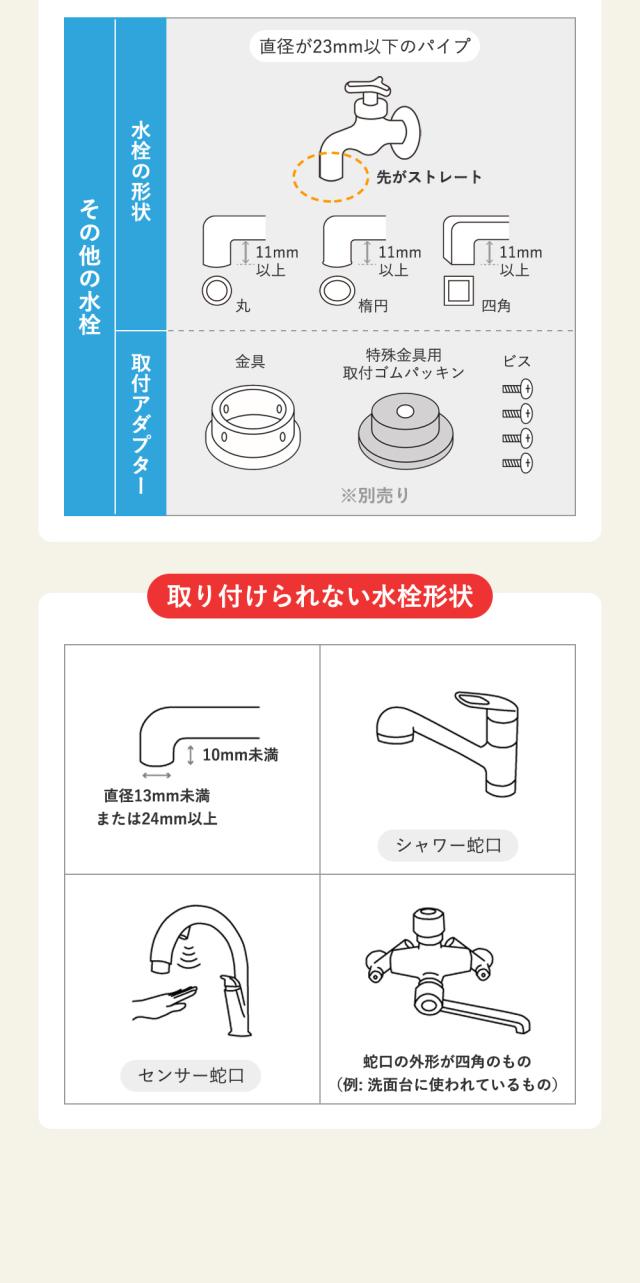材料の種類 浄水器本体:ABS樹脂・ポリプロピレン