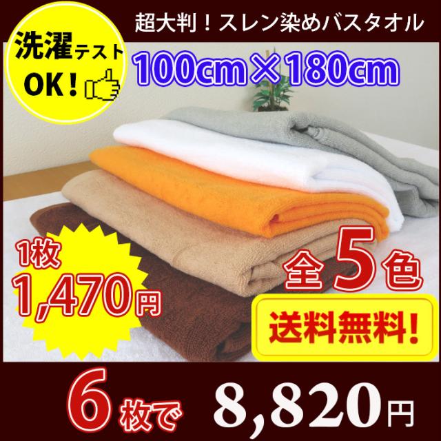 送料無料 6枚セット 超大判バスタオル 長持ちタオル 丈夫な業務用スレン染バスタオル 2000匁(カラー エステ サロン マッサージ タオルケット