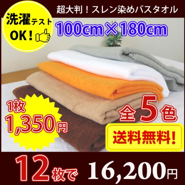 送料無料 12枚セット 超大判バスタオル 長持ちタオル 丈夫な業務用スレン染バスタオル 2000匁(カラー エステ サロン マッサージ タオルケット