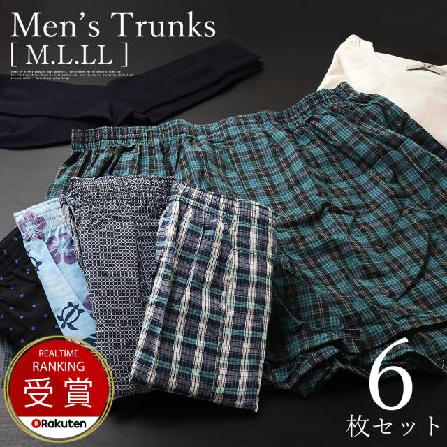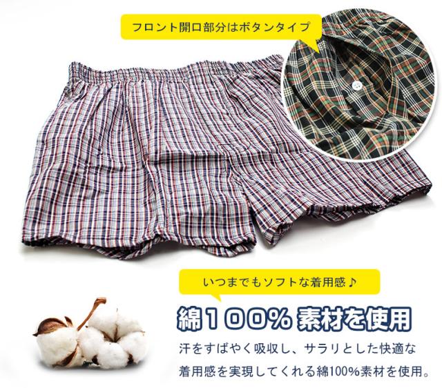 送料無料 パンツ メンズトランクス 6枚セット M/L/LL 2枚組×3パック 前開き パンツ 綿100% 下着 肌着 インナー チェック プリント柄