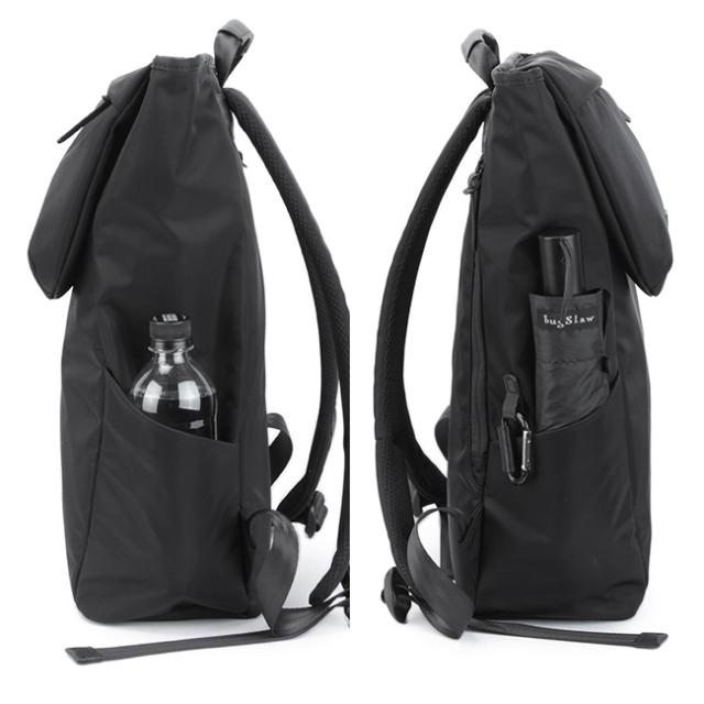 両側面には500mlペットボトルや折り畳み傘などの収納に役立つサイドポケットを装備。