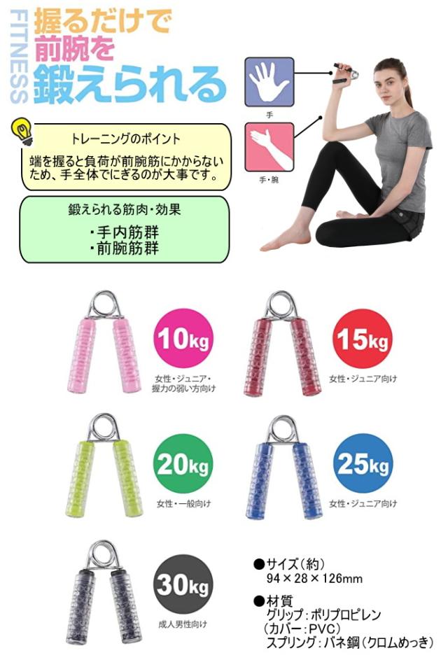 | 特徴 | 室内で手軽に筋トレ! 握るだけで前腕を鍛えられるハンドグリップ。 どこでもできるスタンダードタイプで毎日欠かさずトレーニング! 成人男性向けです。 ■ネコポス(メール便:全国一律300円)での配送もお受けします。 【ネコポス便の条件とご案内】 メール便を指定してお買い上げの方に限りますので、配送方法を選択していない場合は宅配便(通常送料)となりますのでご注意ください。 ネコポス対応品以外もお買い上げの場合、ネコポスを選択することができなくなるため、通常の宅配便での手配となります。 大きさの都合上本商品は「2個」までネコポス対応となりますので、3個以上お買上げの場合はネコポスの複数個口か通常の宅配便で手配します。 ネコポスの送料はシステムの都合上「数量×送料(300円)」で自動計算されますが、ショップ側でいくつ入るか計算して送料を修正いたします。 『ネコポスについての補足』という画像に詳細を載せておりますので、ご注文前に必ずご確認ください。 送料無料条件をクリアした場合、まとめて宅配便で出荷させていただくことがございます。(どうしてもネコポスがいいという場合はお受けすることもできますが、ネコポス複数個口分の送料をいただきます。) ※住所を元に配達するため、住所不備による配達誤りなどについてはご対応できません。 ※ネコポスは転送ができませんので、ご注文を確定する前に必ずお届け先住所に間違いがないかご確認くださいますようお願いいたします。 ※手渡しではなく投函となるため、郵便受けがない場所へはお届けできません。 ※ネコポスは日時指定ができませんので予めご了承くださいませ。 ※ネコポスの詳細はヤマト運輸ホームページをご覧ください。 そのほかのダイエット・フィットネス関係はこちら↓ ダイエット・フィットネス関係 |