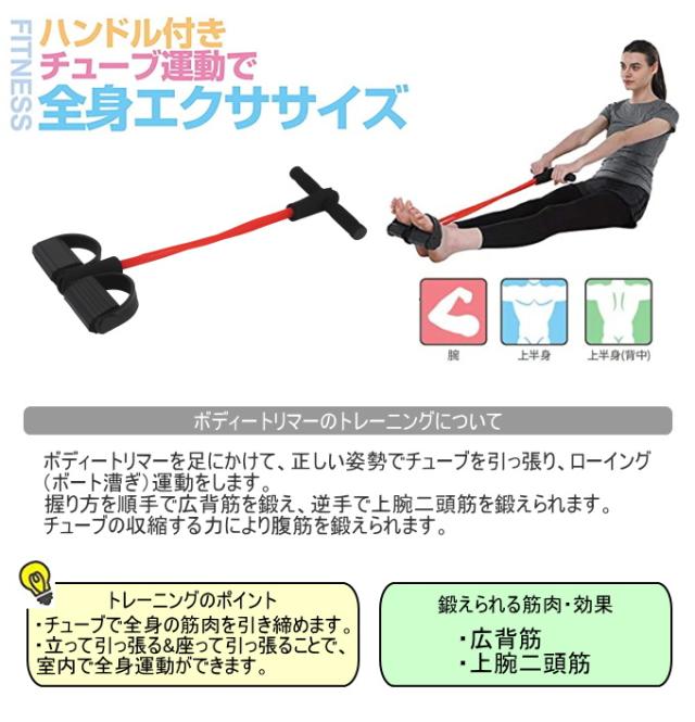 | 特徴 | ハンドル付きチューブ運動で全身エクササイズ。 チューブで全身の筋肉を引き締めます。 立って引っ張る&座って引っ張ることで、室内で全身運動ができます。 そのほかのダイエット・フィットネス関係はこちら↓ ダイエット・フィットネス関係 |