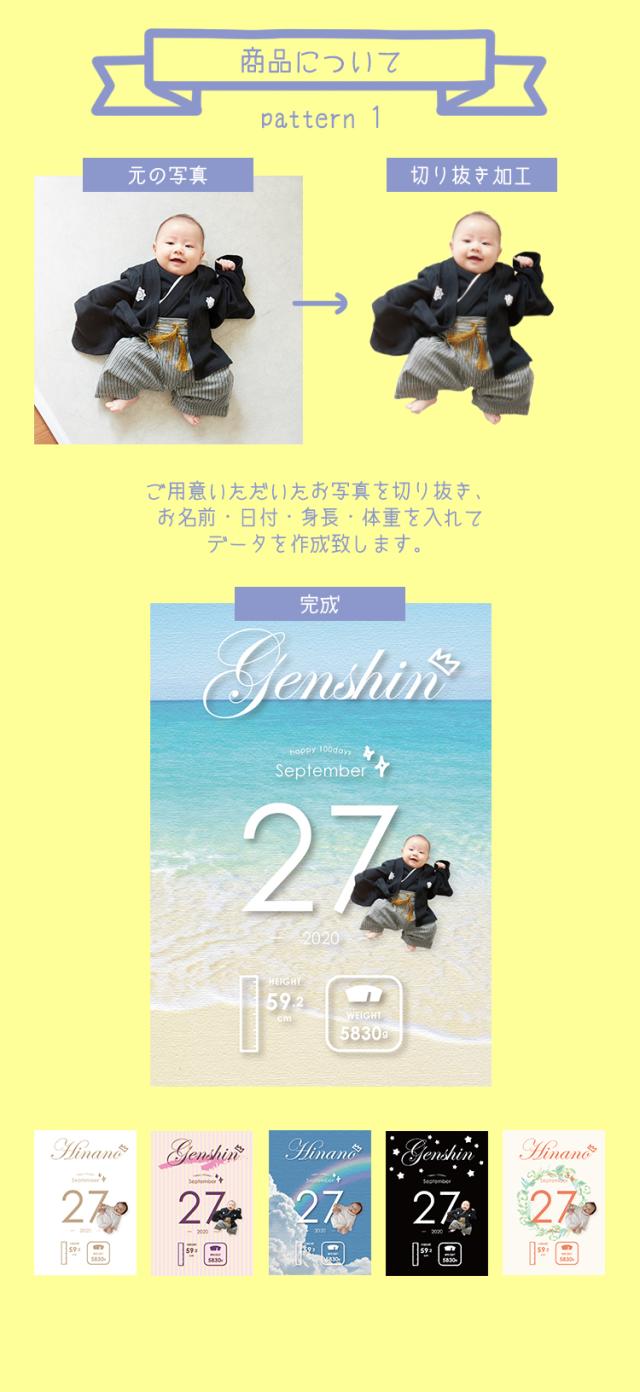 アニバーサリーベビーポスター (パターン1) ベビーフォト 100日記念 お食い初めポスター 成長のきろく オーダーメイド 記念撮影 ベビーポスター 赤ちゃん 月齢撮影 インスタ映え 100日祝い