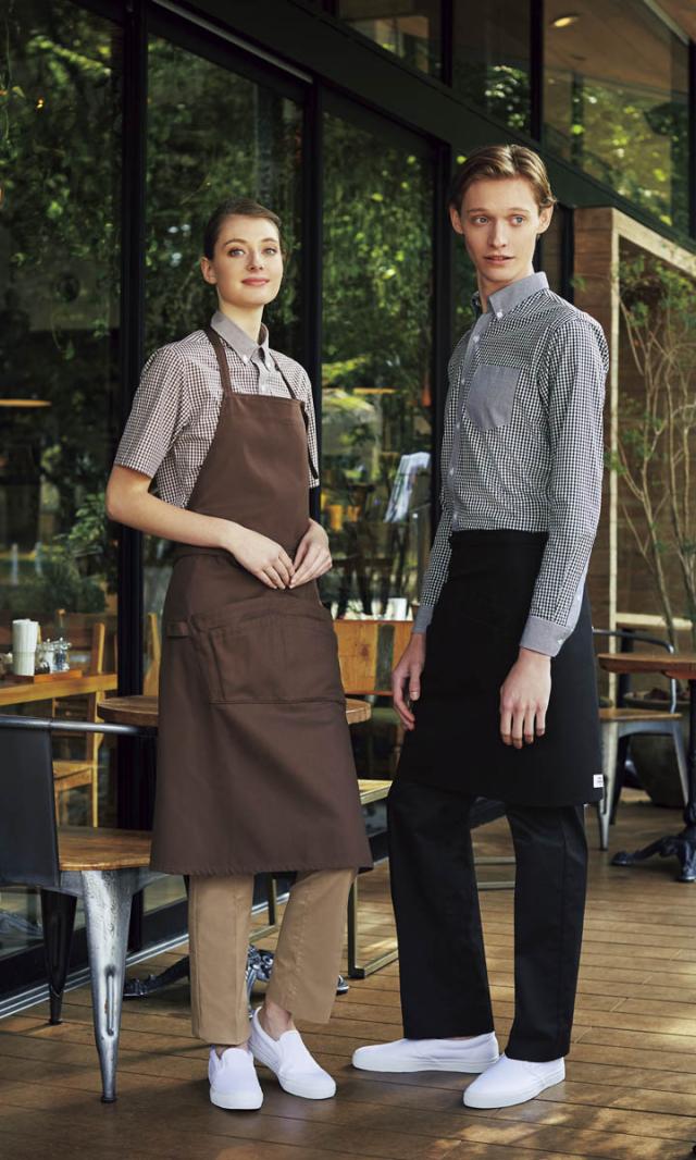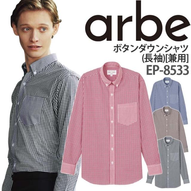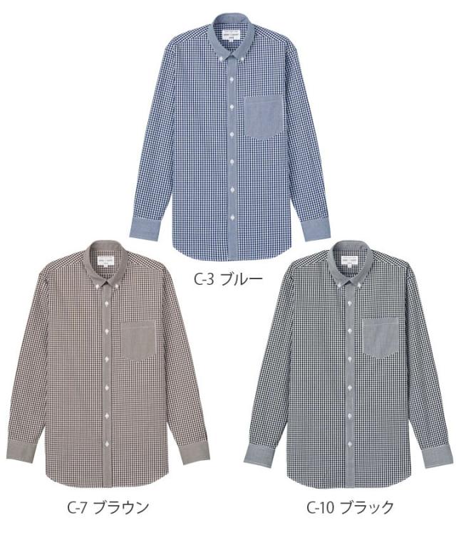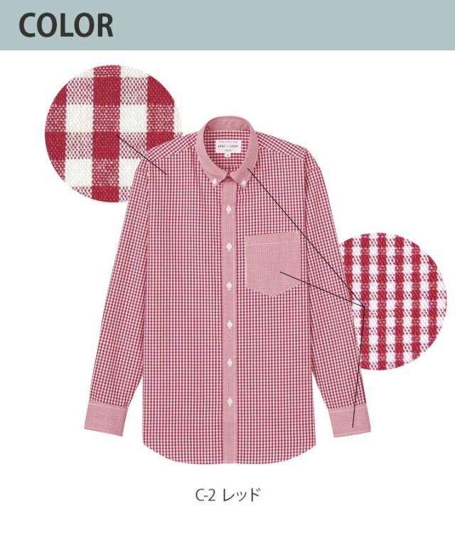 ボタンダウンシャツ EP-8533 長袖 メンズ レディース チェック柄 男女兼用 レストラン カフェ チトセ arbe アルベ