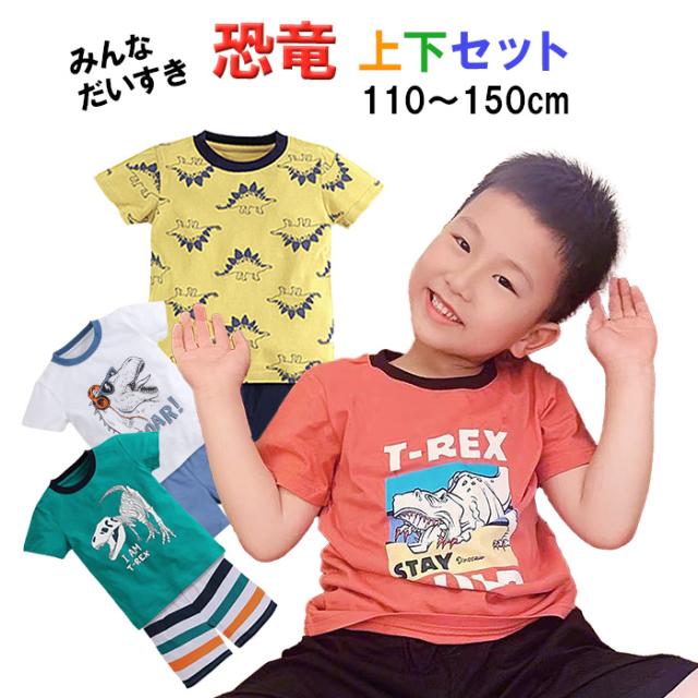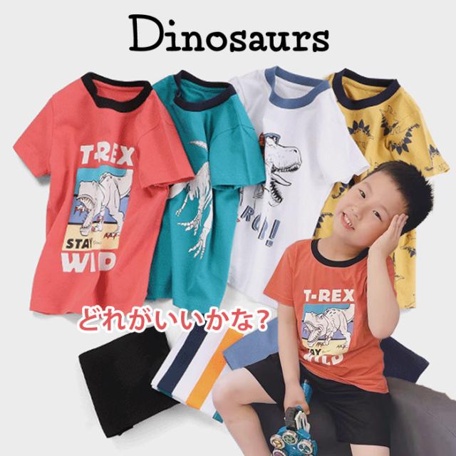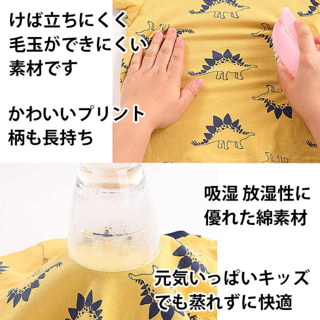 パジャマ 部屋着 上下セット 恐竜 半袖 短パン セットアップ 男の子 子供 夏服 保育園 綿100% 全4色 110-150cm h862 pc8