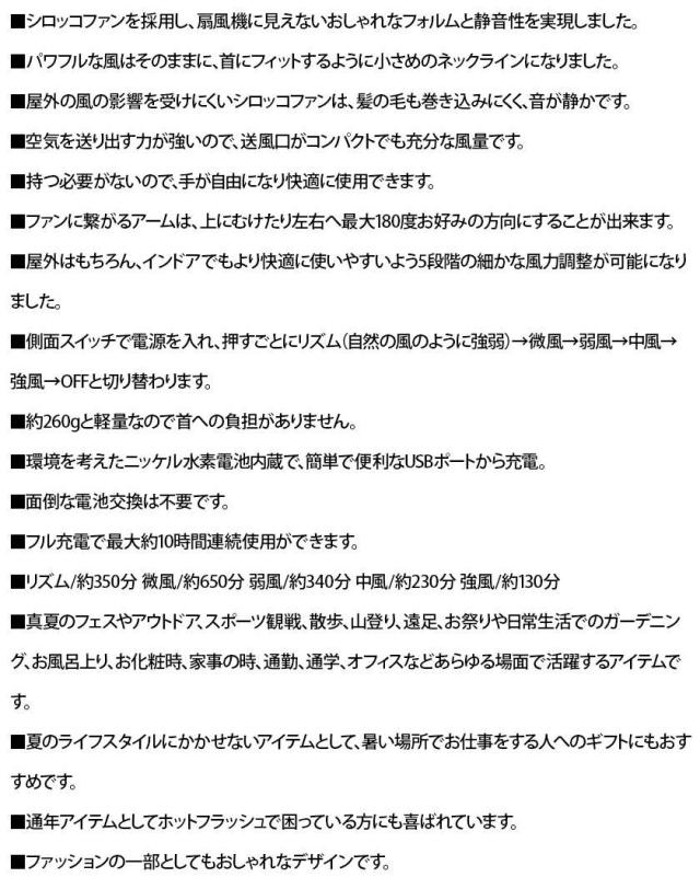 扇風機 首かけ 首掛け ハンズフリー おしゃれ 静か 静音 軽量 小型 充電 USB サーキュレーター ネックファン ポータブルファン ポータブル扇風機 送風機 夏 2021【商品説明】