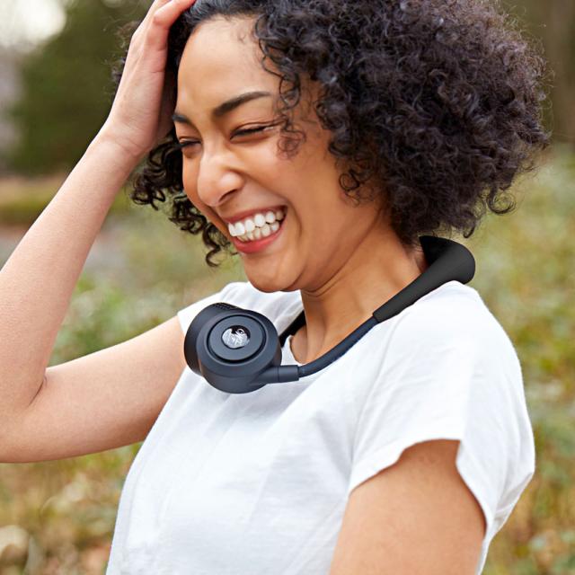 ■暑い時、暑い場所でいつでもどこでも、首にかけるだけの2021年モデル新形状の携帯用扇風機です。