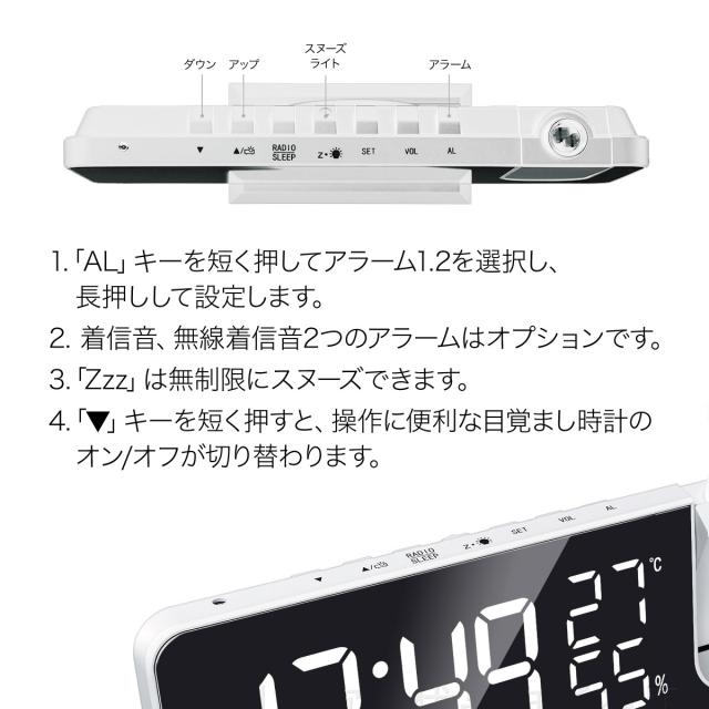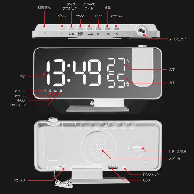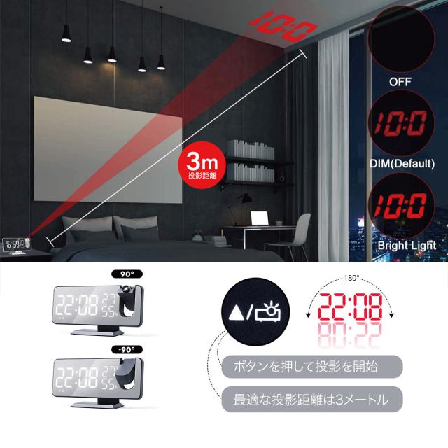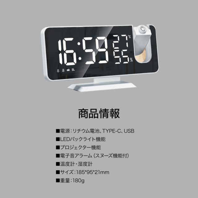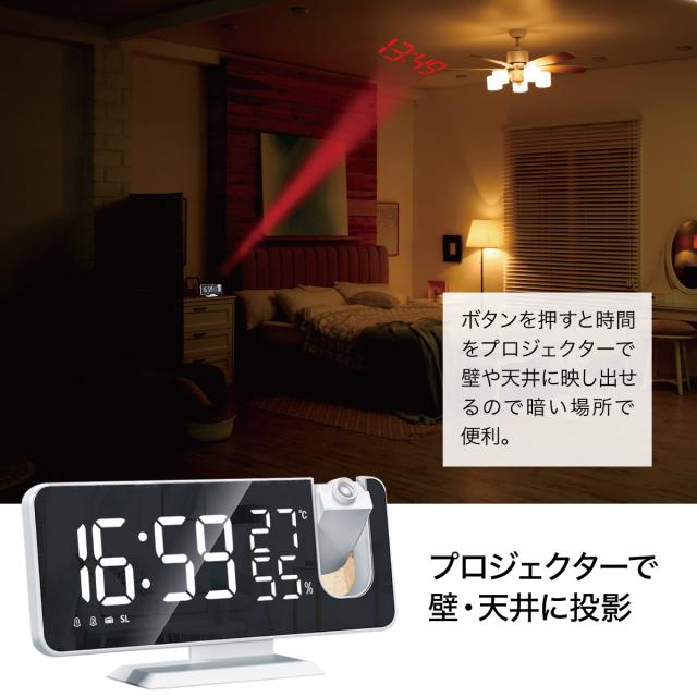 プロジェクター クロック 時計 天井 目覚まし時計 デジタルクロック 温度計 湿度計 pro-clock02