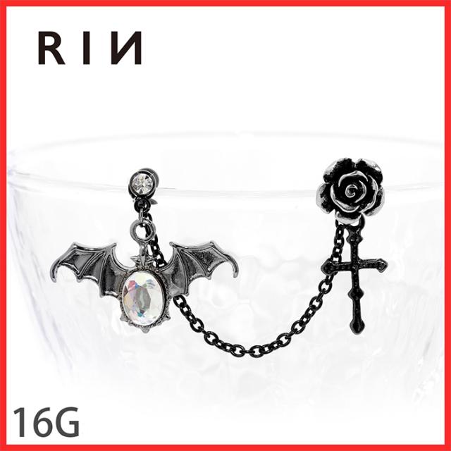 軟骨ピアス 16G チェーン こうもり クロス 薔薇 オリジナル set-t1141-70-118-11