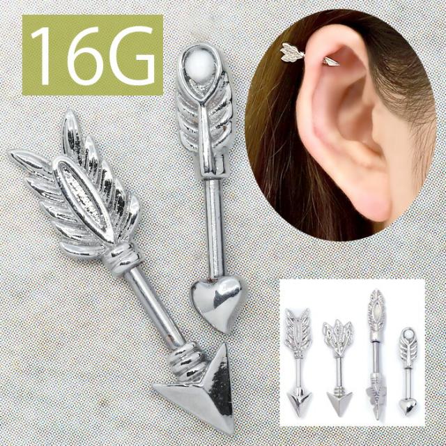 軟骨ピアス 16G ボディピアス チェーン こうもり クロス 薔薇 ストレートバーベル サージカルステンレス 金属アレルギー対応 片耳用 かっこいい メンズ 個性的 スタイリッシュ