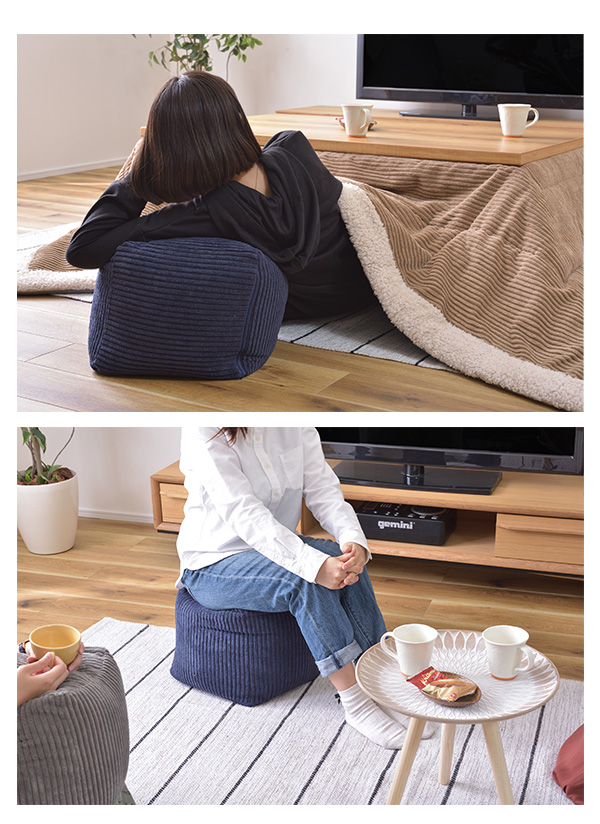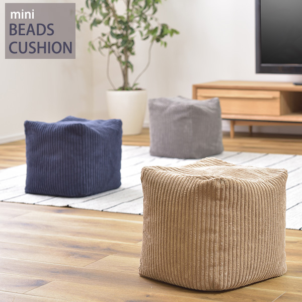 コロンと可愛い キューブ型 ミニ ビーズクッション コーデュロイ生地 / 四角 小さい マイクロビーズ おしゃれ かわいい コンパクト ビーズソファー 一人暮らし ベージュ ネイビー グレー 軽量 立方体ミニクッション mini
