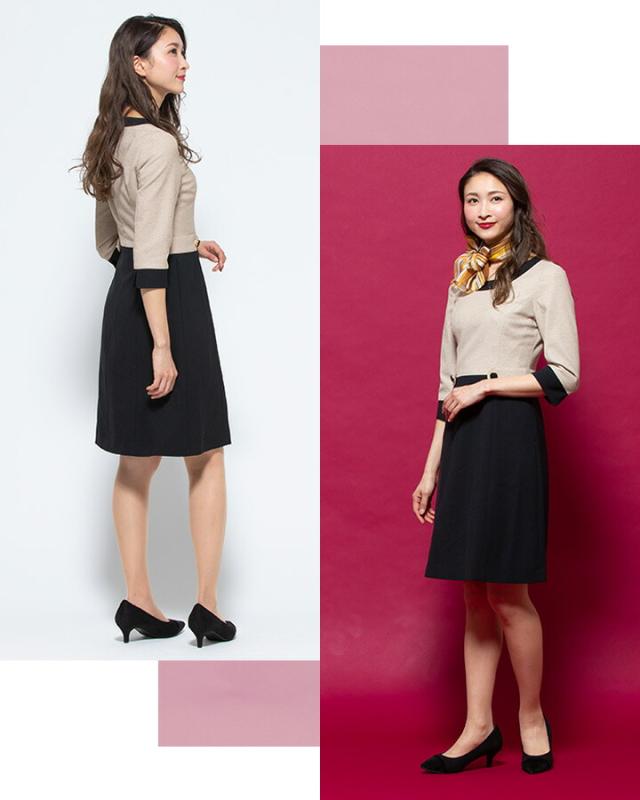 ワンピース 事務服 アンジョア enjoie ジョア 61520 半袖 透け防止 女性 レディース 受付 エステ服 コンシェルジュ おしゃれワンピース 上品 大さいサイズ 17号〜23号