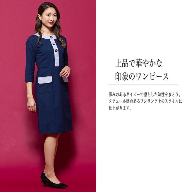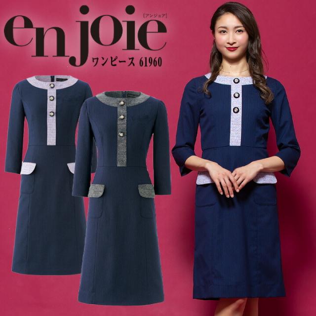 ワンピース 事務服 アンジョア enjoie ジョア 61960 半袖 透け防止 女性 レディース 受付 エステ服 コンシェルジュ おしゃれワンピース 上品 小さいサイズ 5号〜15号
