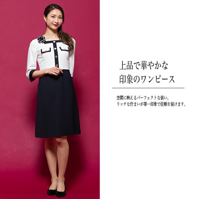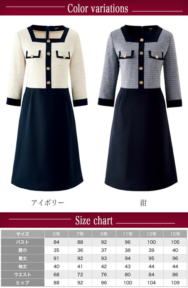 ワンピース 事務服 アンジョア enjoie ジョア 66720 コンシェルジュ 受付 エステ服 コンシェルジュ おしゃれワンピース 上品 小さいサイズ 5号〜15号