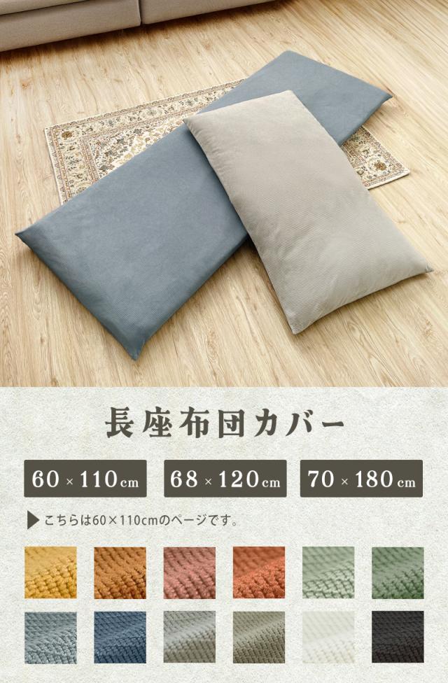 長座布団カバー ごろ寝マットカバー 60×110 シェニール織 高級感 無地 シンプル ナチュラル おしゃれ 北欧 和モダン 起毛 オールシーズン 夏用 冬用 洗える 座布団カバー なが座布団カバー クッションカバー ロングクッションカバー 60 110