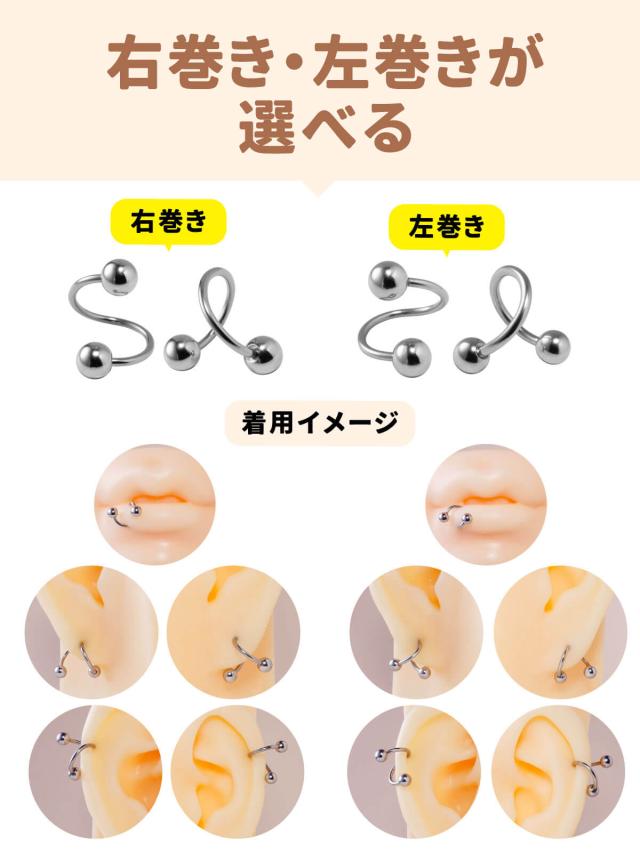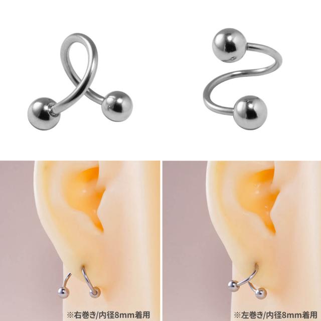 イヤーロブ,ヘリックス,トラガス,アンチトラガス,リップ,ファーストピアス,セカンドピアスにおすすめのスパイラルバーベルです。