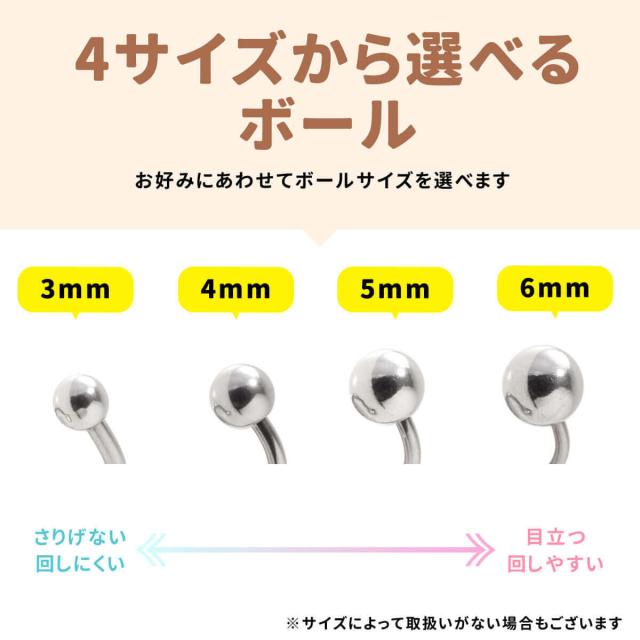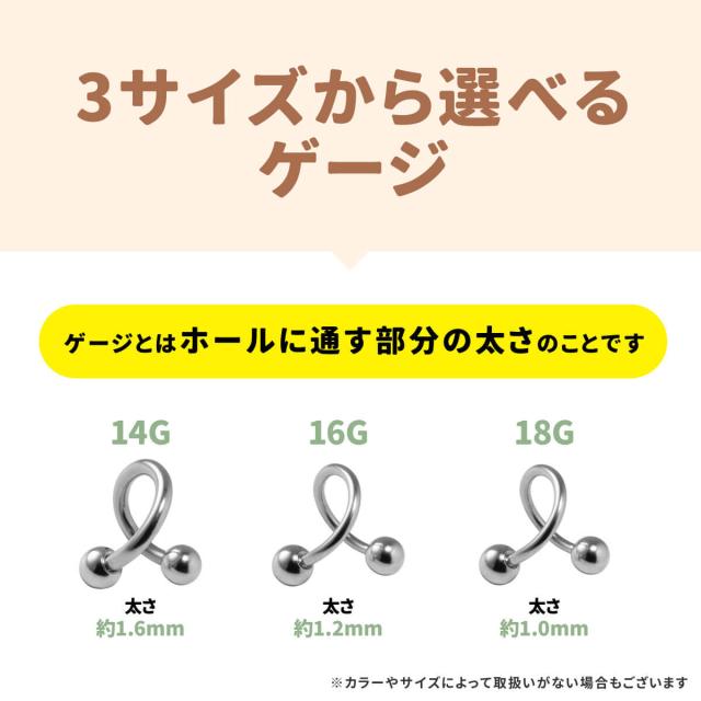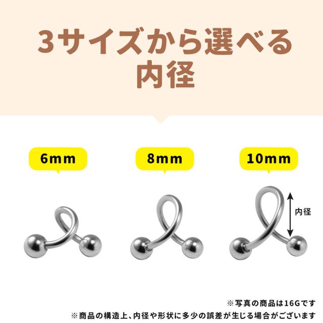 太さ14G,16G,18G 内径6mm?10mm ボール3mm?6mmのスパイラルバーベルです。