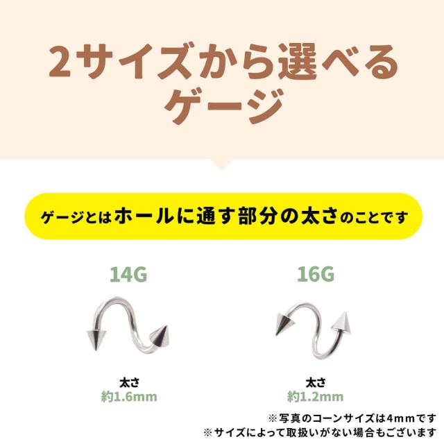 スパイラルコーンバーベル 14G 16G サージカルステンレス イヤーロブ ヘリックス 口ピアス 軟骨ピアス ボディピアス