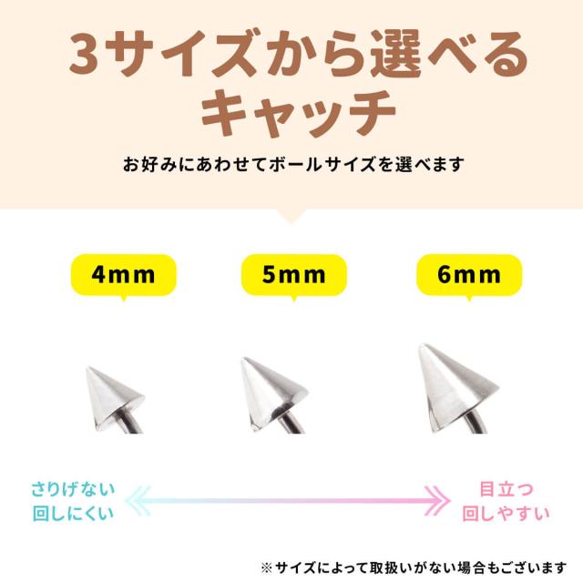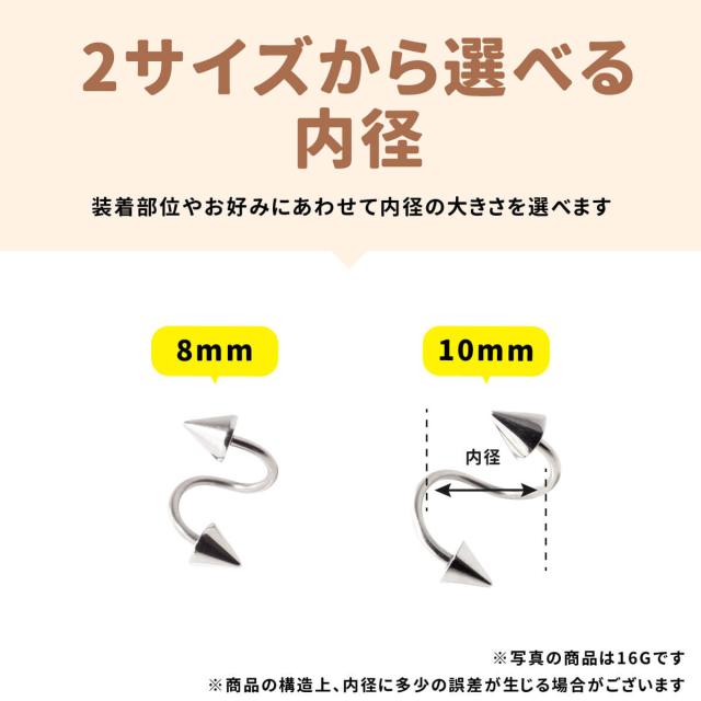 太さ14G,16G 内径8mm〜10mm キャッチ4mm〜6mmのスパイラルバーベルです。
