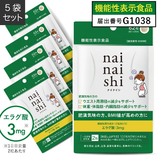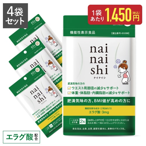 エラグ酸 ビフィズス菌 医師監修 国産 機能性表示食品 ナイナイシ 4袋 4カ月分 メール便 肥満気味な方 体重 体脂肪 BMI 内臓脂肪の減少をサポート アフリカマンゴノキ エラグ酸サプリ 内臓脂肪を減らす お腹の脂肪を減らす ダイエット サポート サプリメント