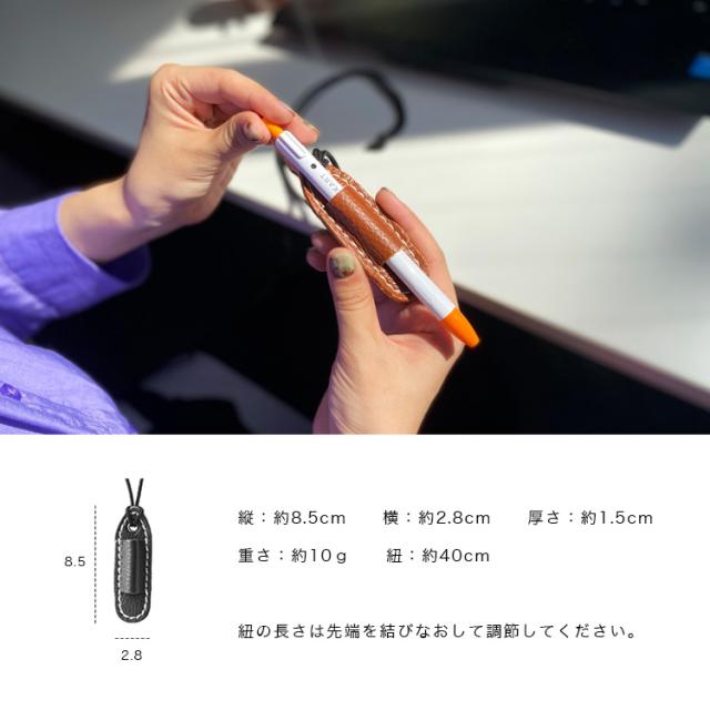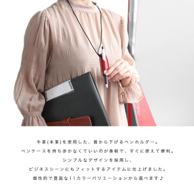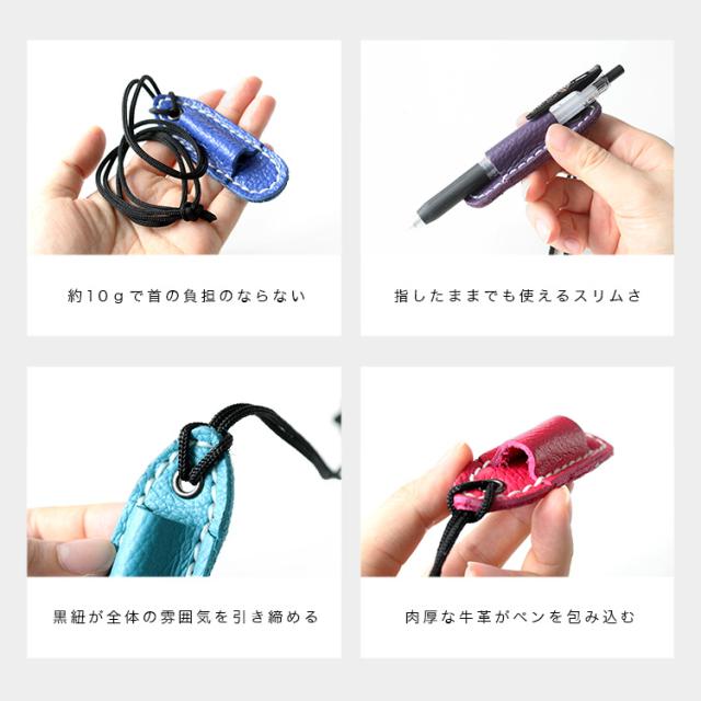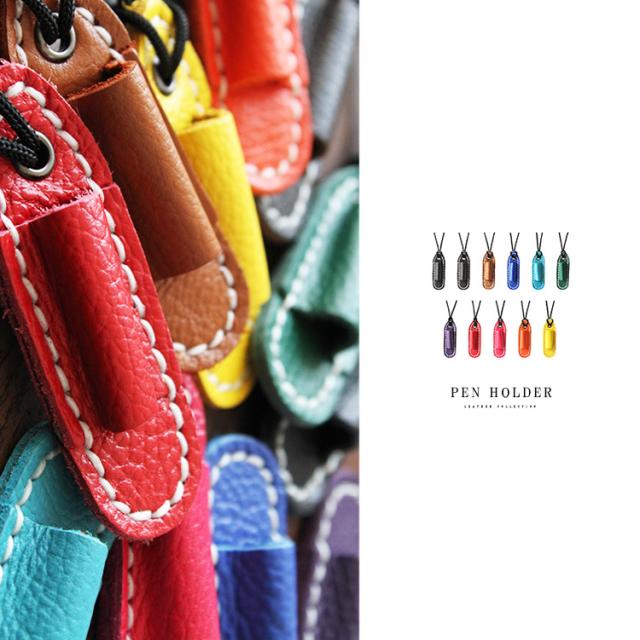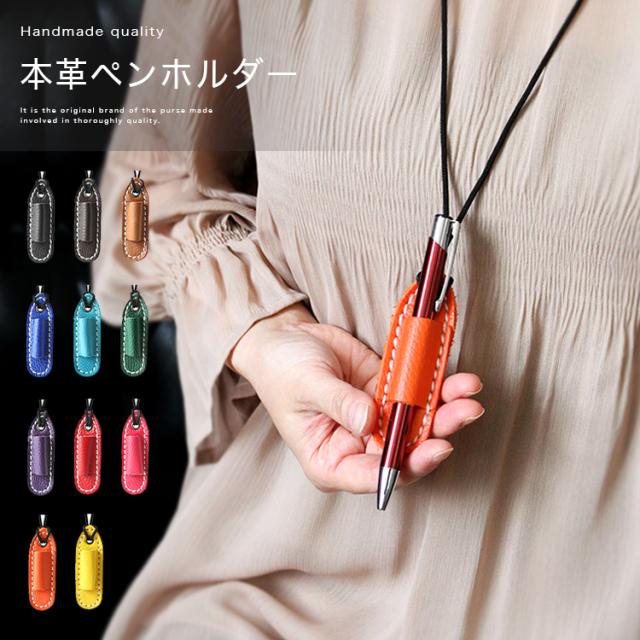 ペンホルダー 本革 メンズ レディース ユニセックス 牛革 シュリンクレザー 首掛け シンプル ブラック ブラウン ダークブラウン ブルー グリーン オレンジ ピンク パープル レッド ターコイズ イエロー【ギフト】ot027
