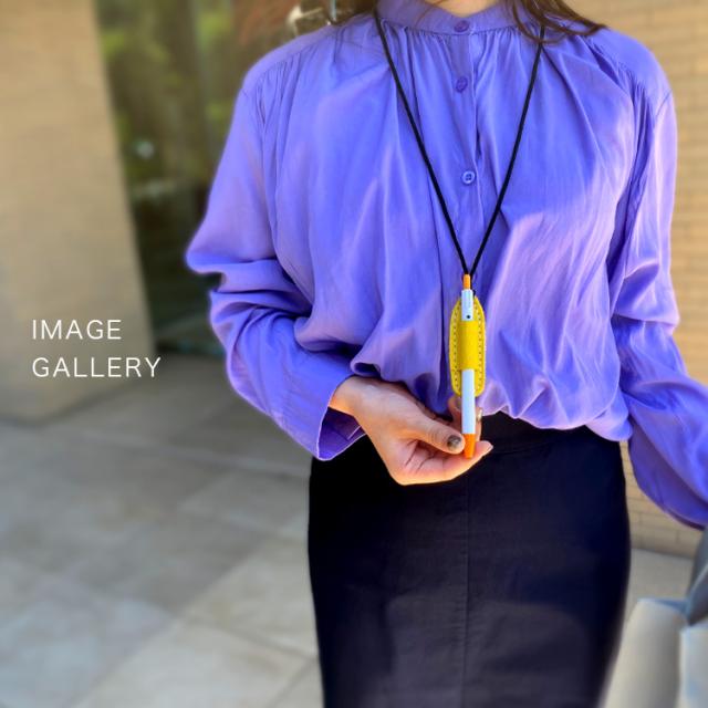 牛革を使用して製作したペンホルダーです。ペンを1本引っ掛けて首に掛けて身に付けることができます。先が空いているので首に掛けたまま使用ができ、ちょっとしたときに便利です。留め結びをすれば長さ調節もできます。