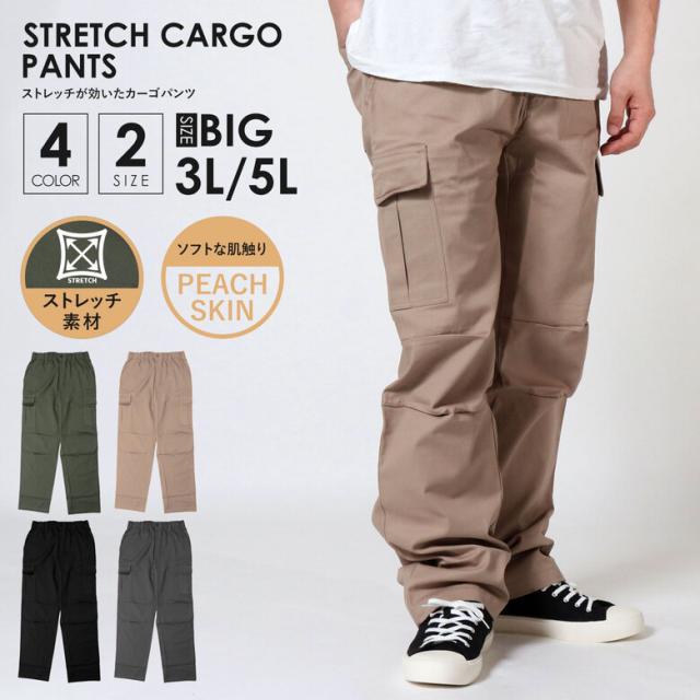 カーゴパンツ メンズ ストレッチ 大きいサイズ ロング 長ズボン ポケット 多い アウトドア キャンプ ミリタリー ルームウェア ボトムス ズボン カーゴ