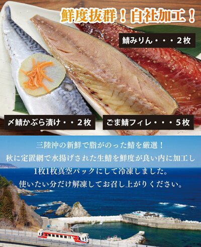 内容量 サバフィレ5枚、鯖みりんフィレ2枚しめサバかぶら漬け2枚