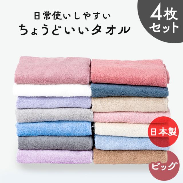 タオル フェイスタオル 送料無料 泉州 4枚セット ビッグフェイスタオル 泉州タオル 速乾 国産 日本製 大判 ビッグ 吸水性 省スペース コンパクト かさばらない ふんわり やわらかい ふかふか コットン タオル 送料無料