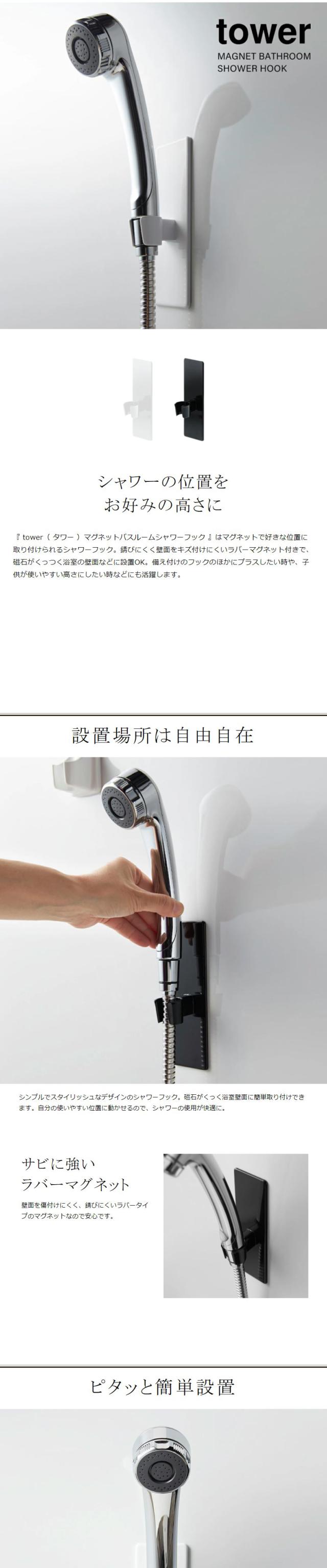[ マグネットバスルームシャワーフック タワー ]山崎実業 tower シャワーフック シャワーホルダー マグネット 磁石 シャワーヘッド フック 収納 お風呂 バスルーム バス 浴室 おしゃれ yamazaki 黒 白 ブラック ホワイト 3805 3806